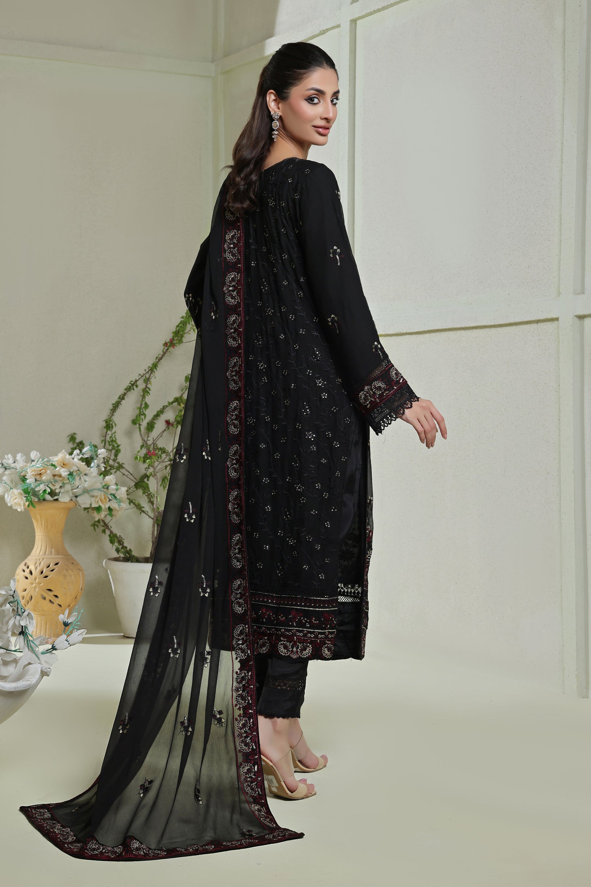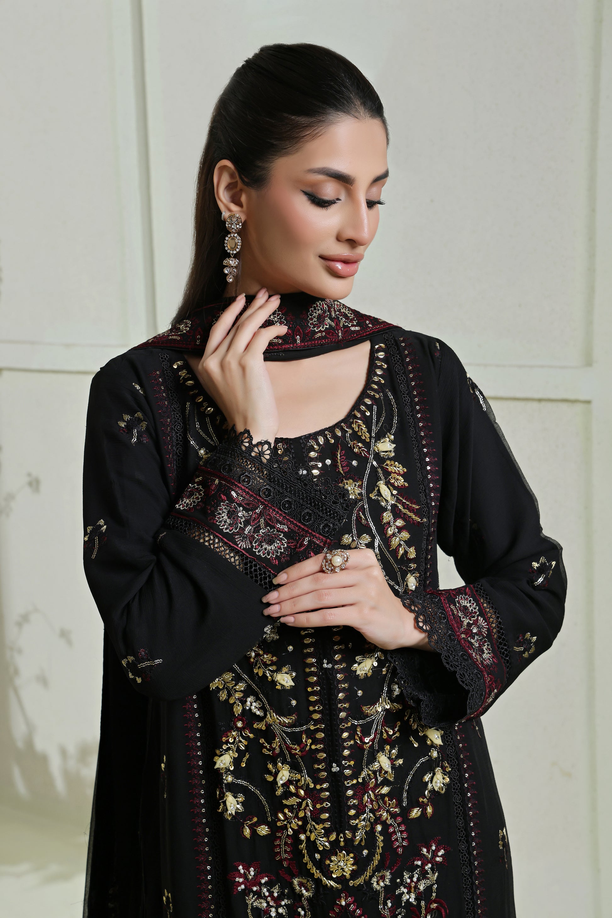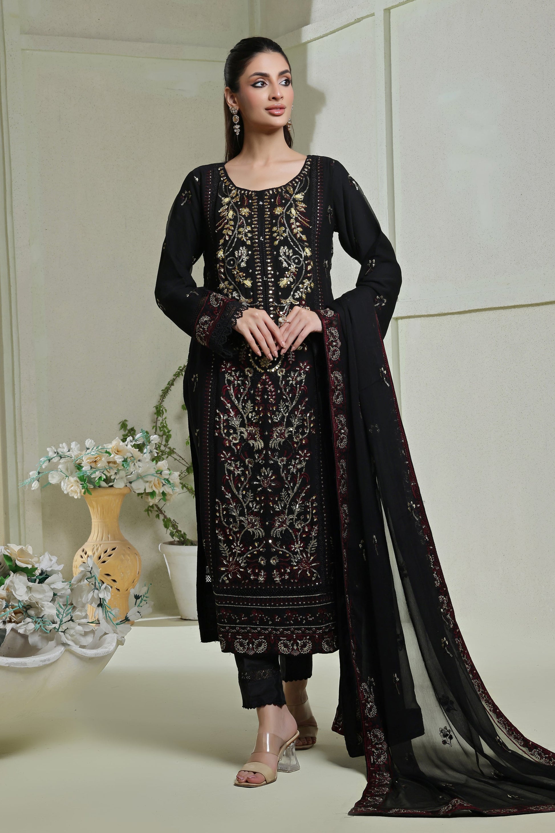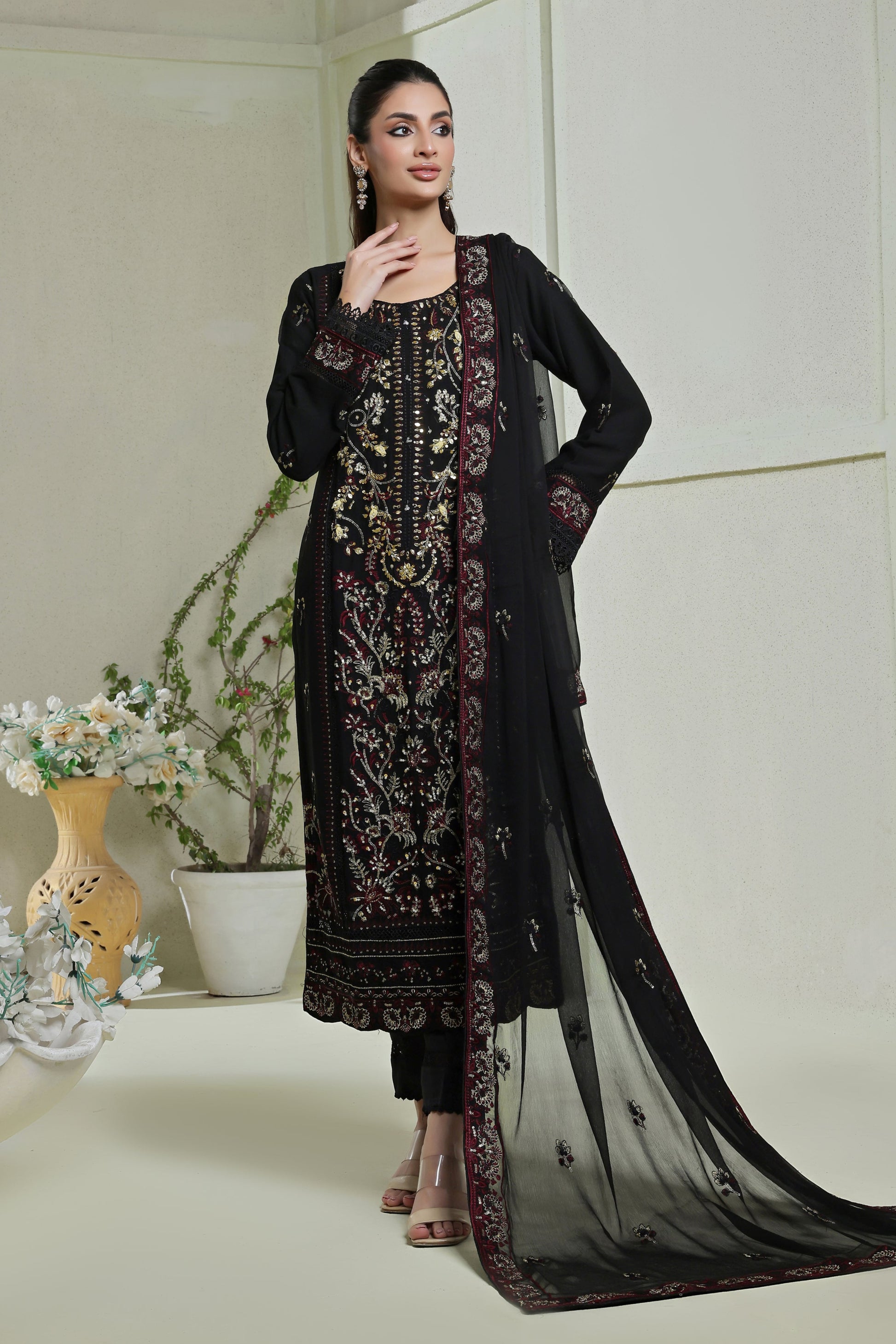 Embroidered Chiffon Dupatta finished All Over