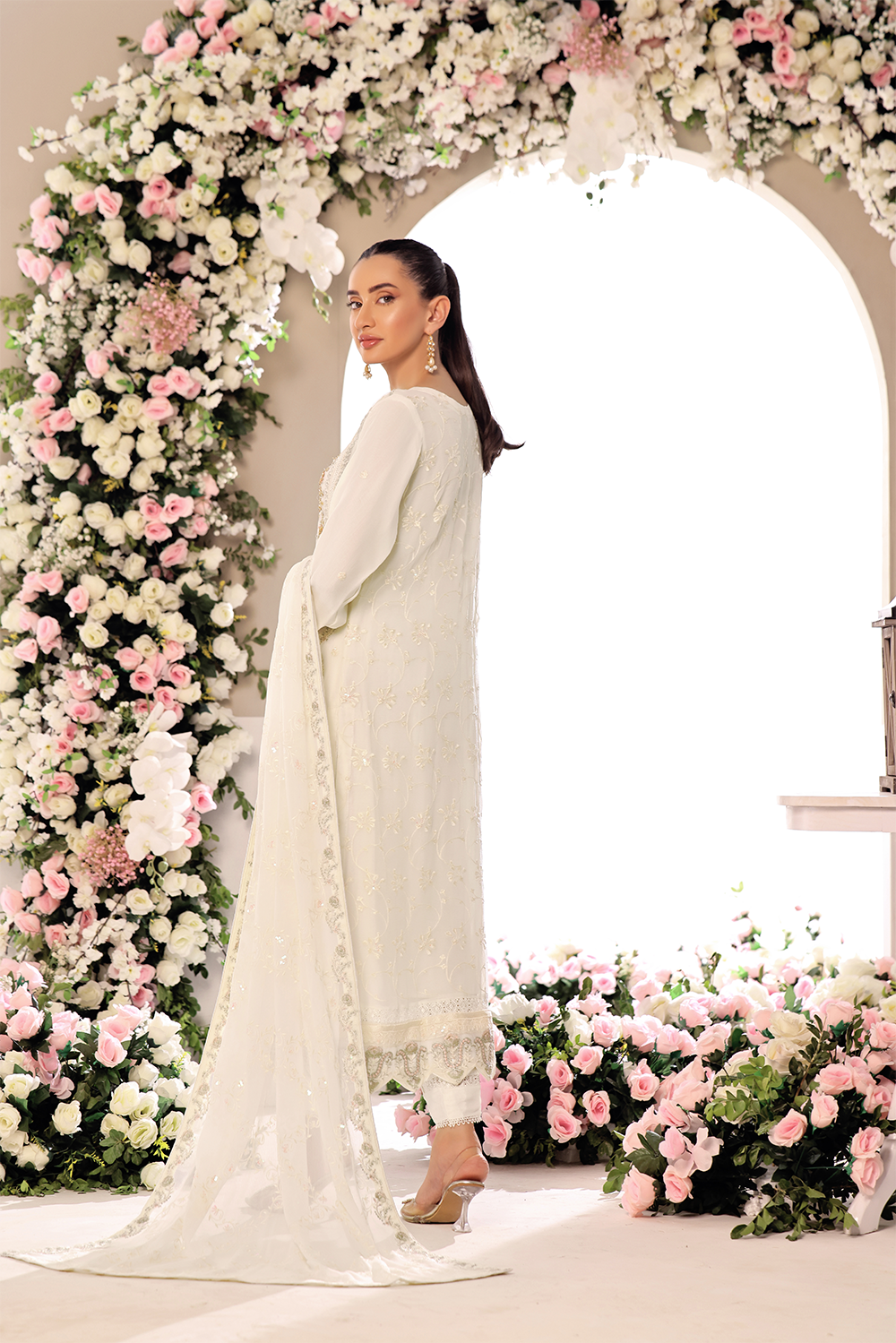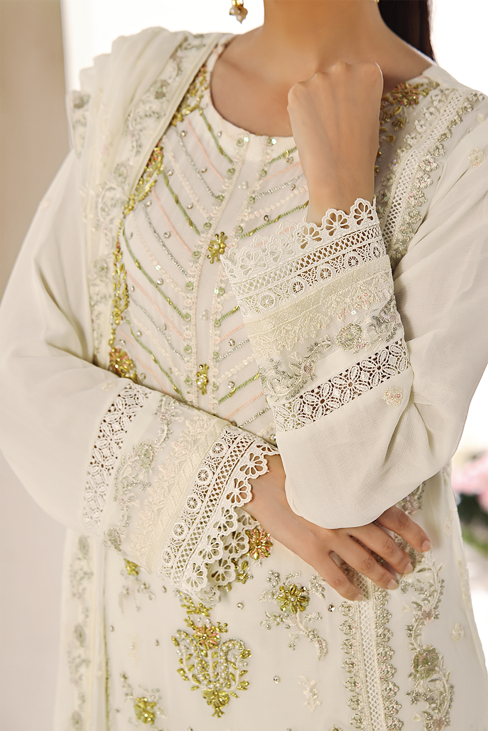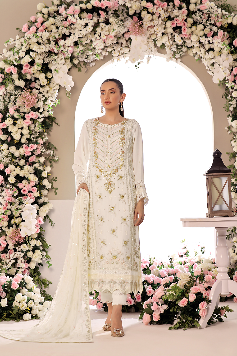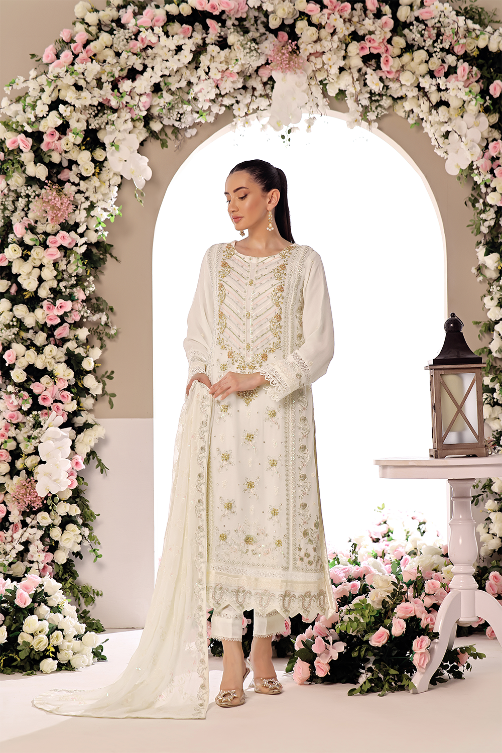 Dupatta : Embroidered chiffon Dupatta with 4 sided finished borders.