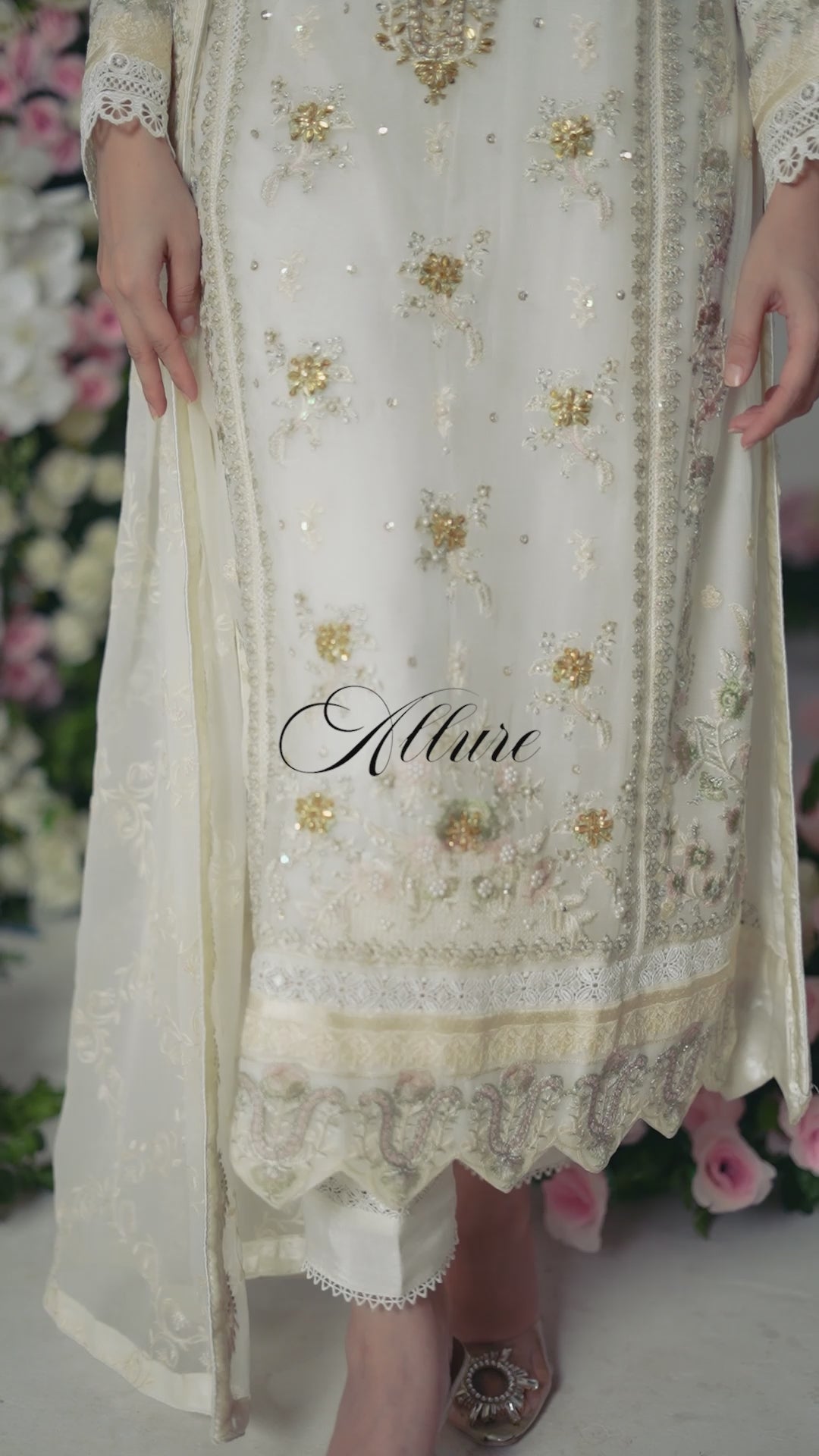 Shirt : Heavy Handwork chiffon long shirt with beautiful embroidery done all over the shirt (front and back) comes with fully lined cotton silk inner