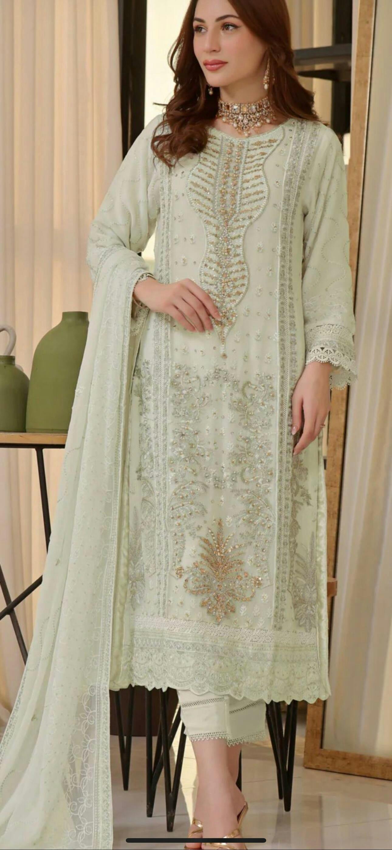 Dupatta : Embroidered chiffon Dupatta with 4 sided finished borders.
