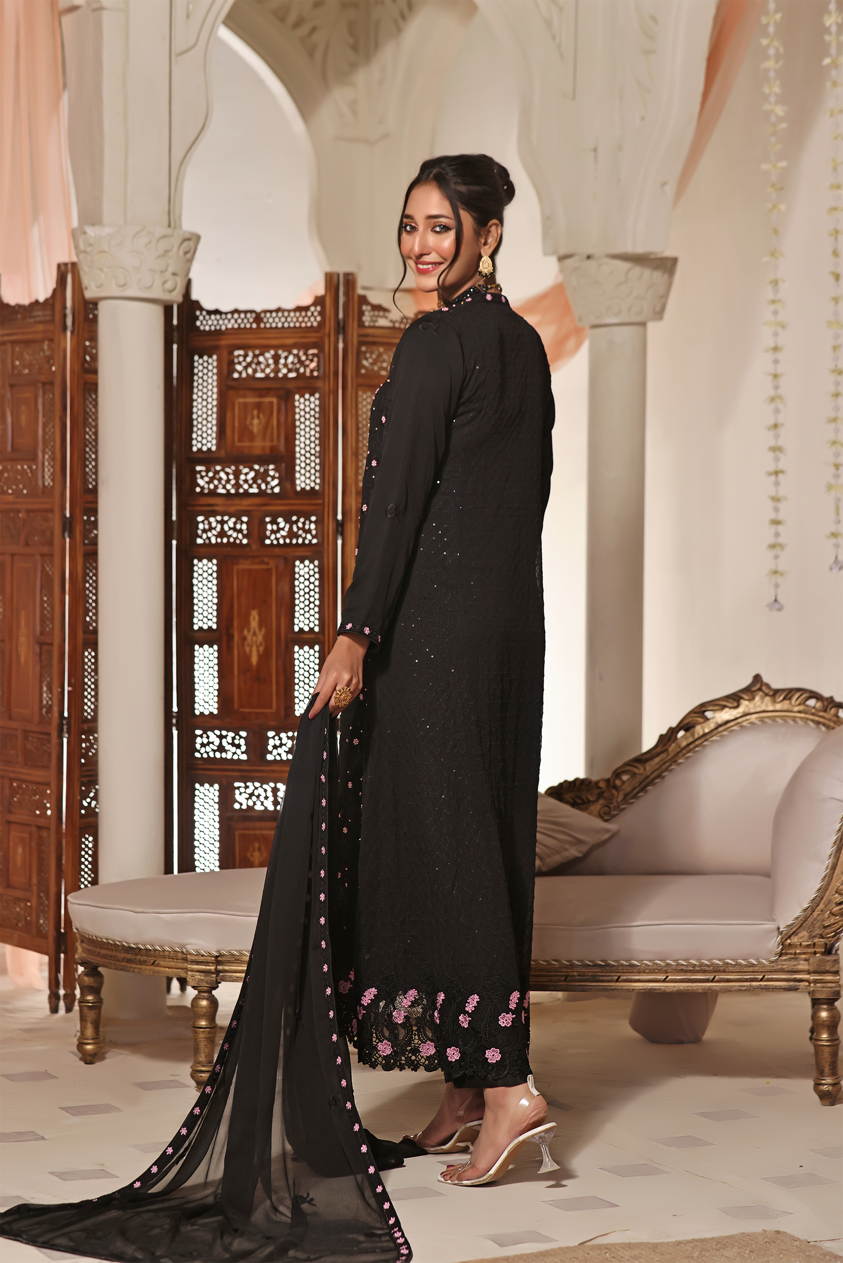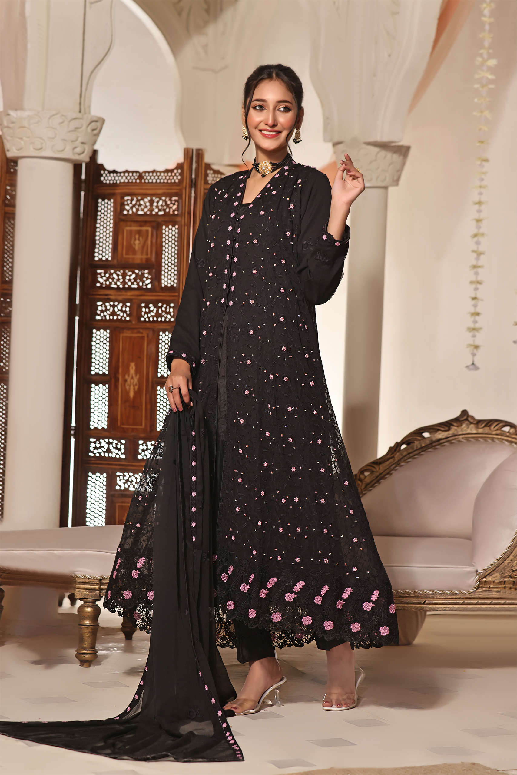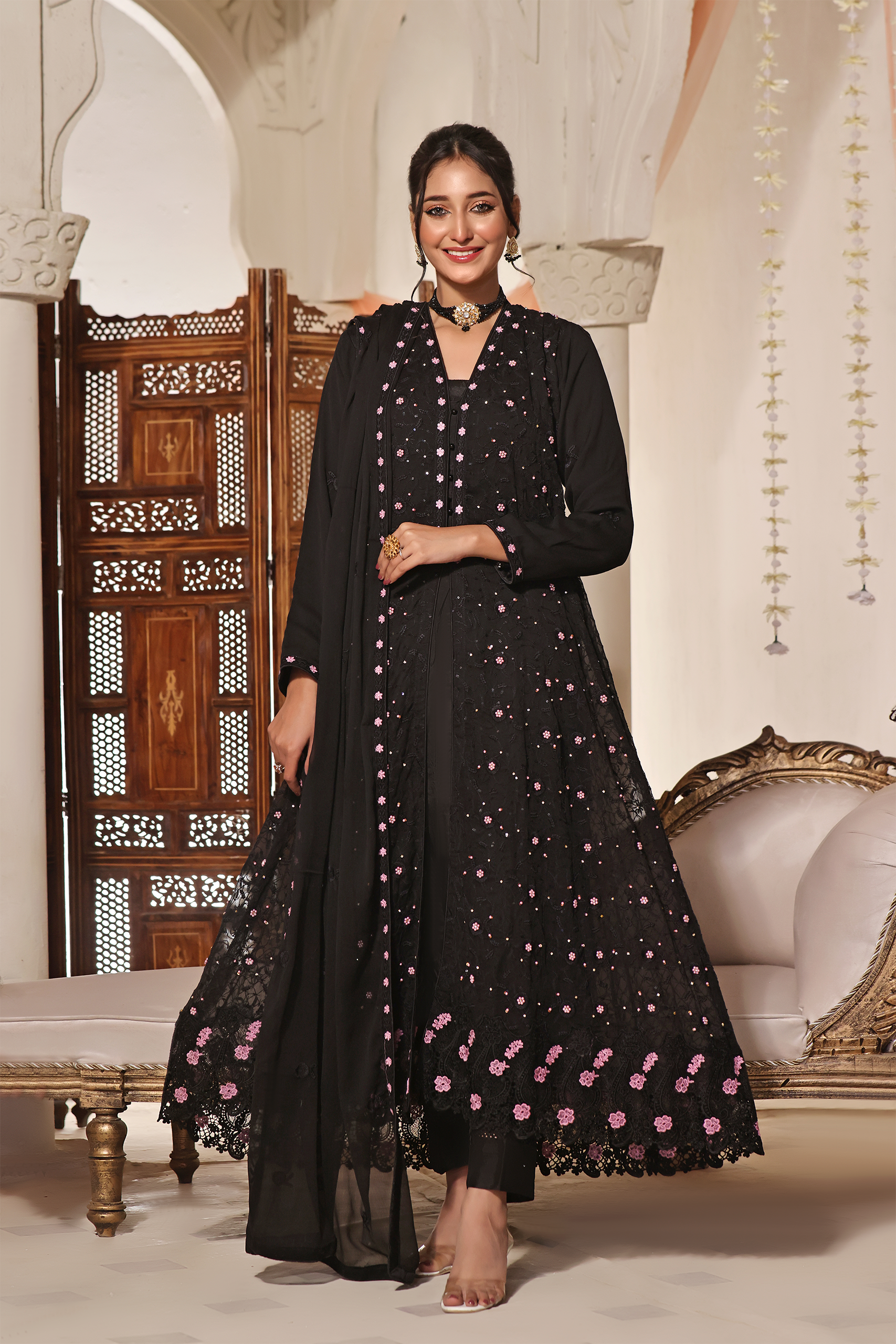 Embroidered Front and back Long Chiffon Gown with delicate handwork on it