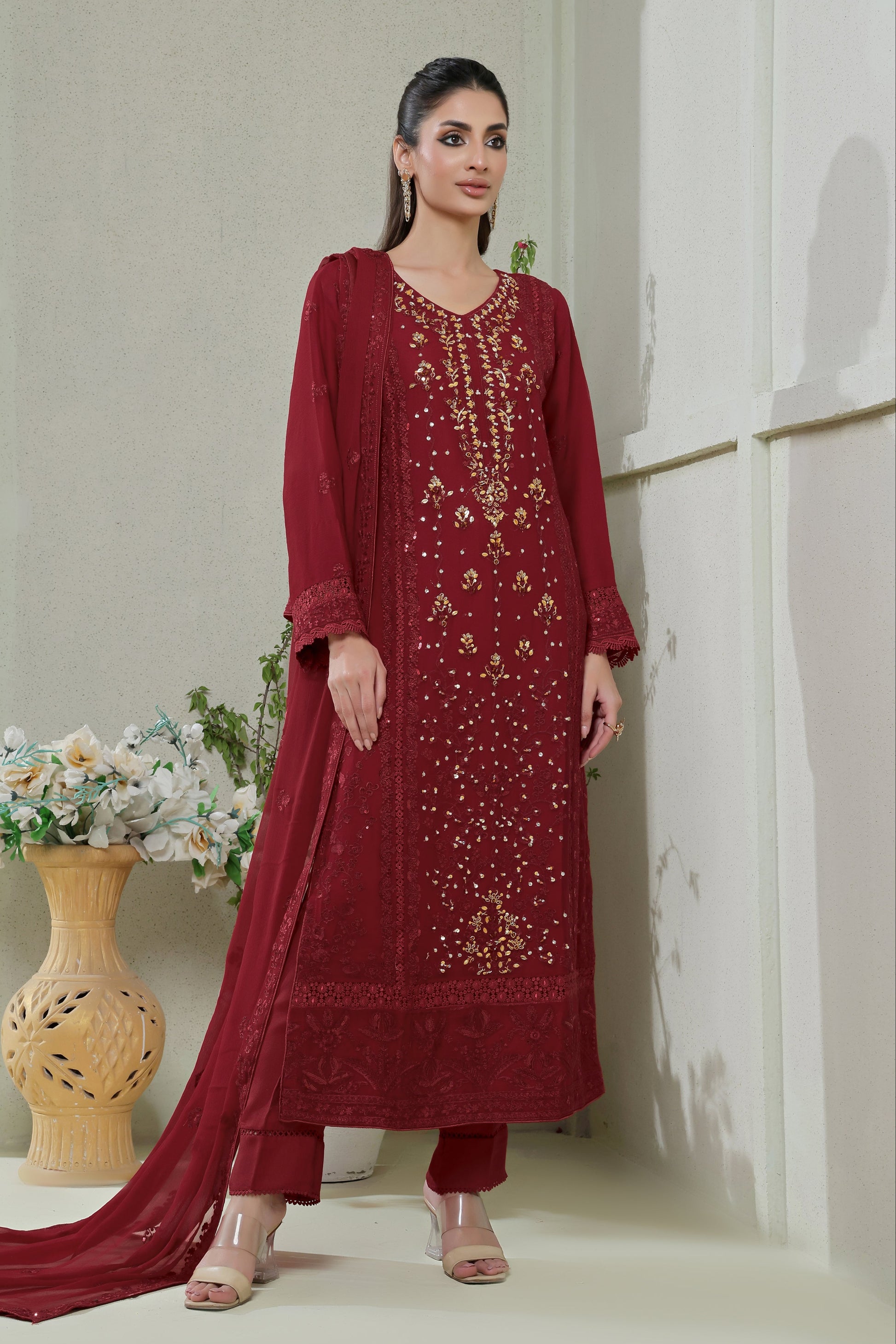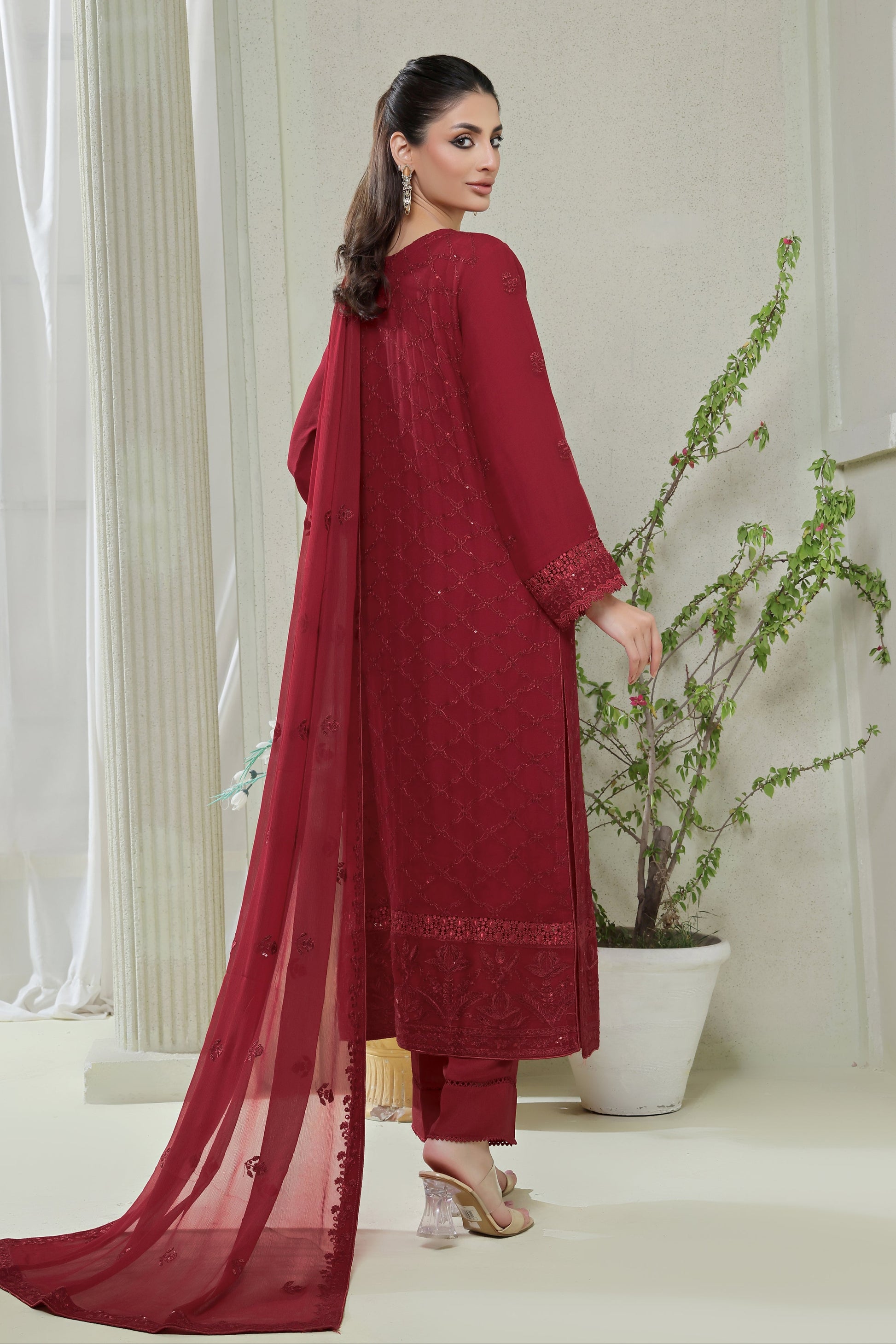 Embroidered Chiffon Dupatta finished All Over